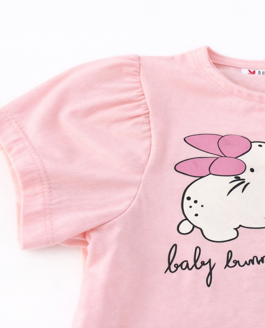 YUKTH KIDS Girls Cotton Bunny Graphic & Heart Print Set